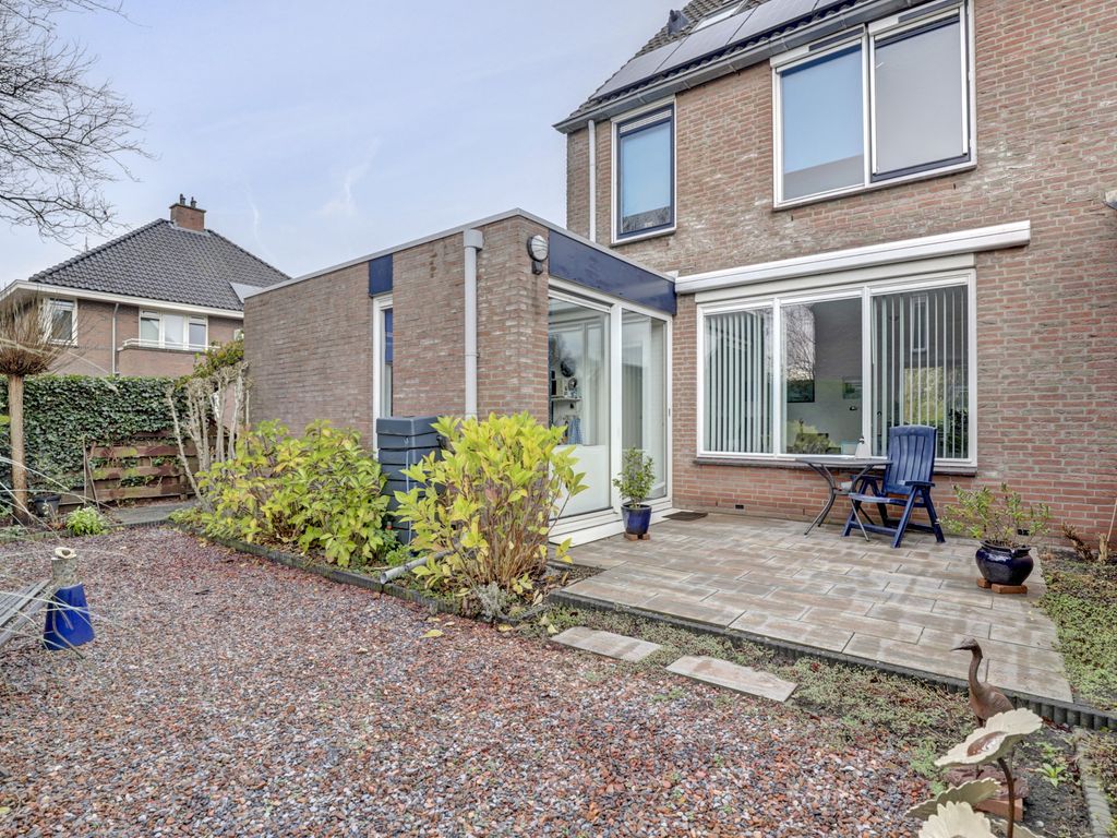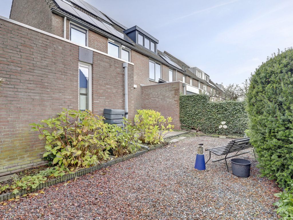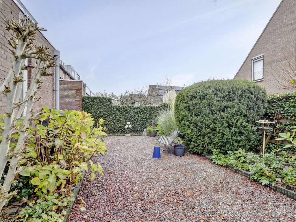 De achtertuin is redelijk onderhoudsarm ingericht en biedt genoeg plek om lekker te genieten van de