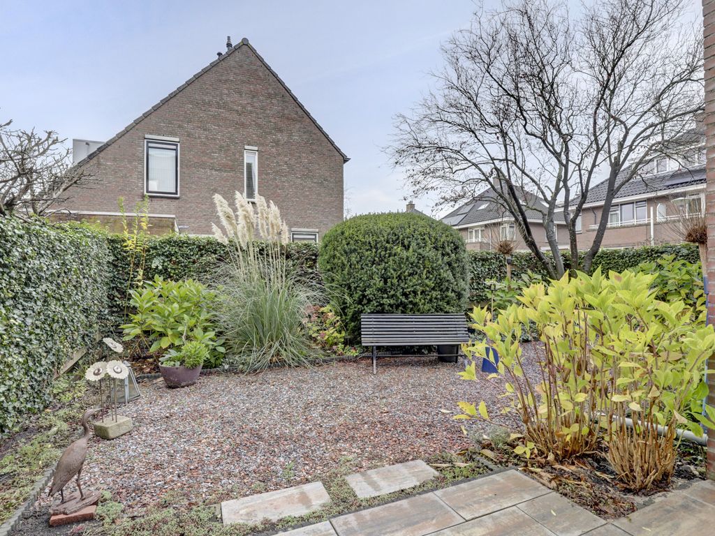 Via de oprit en de keurig aangelegde voortuin met diverse beplanting bereikt u de overdekte entree. In