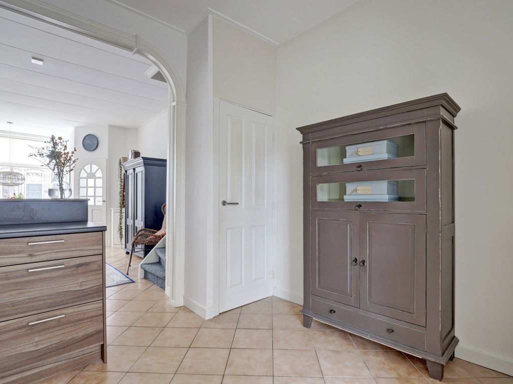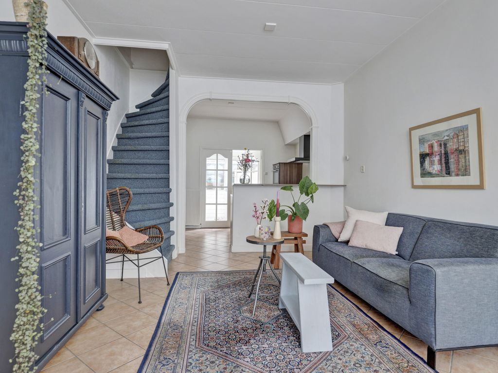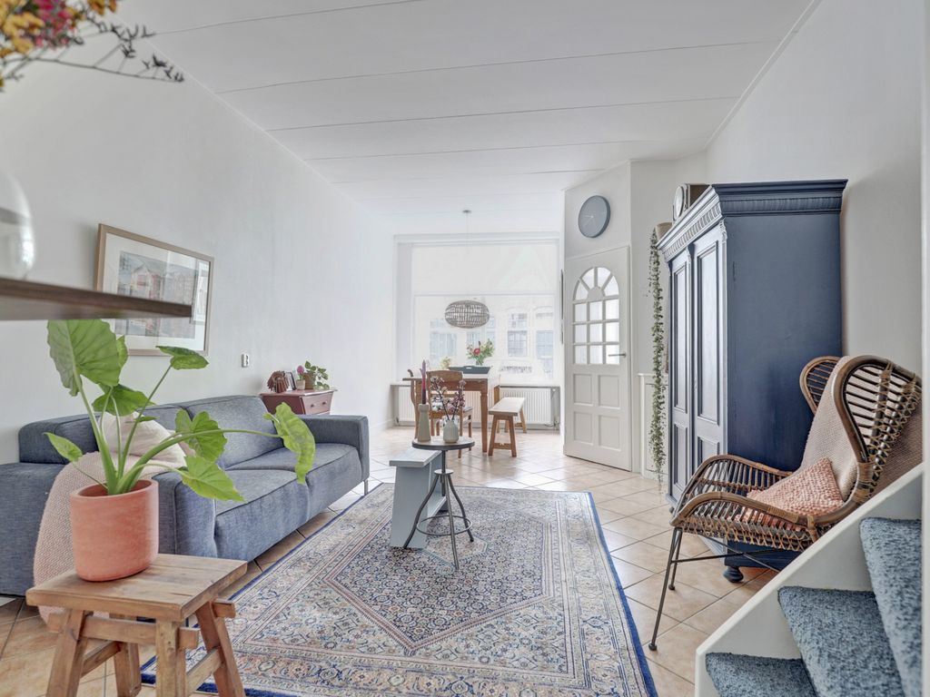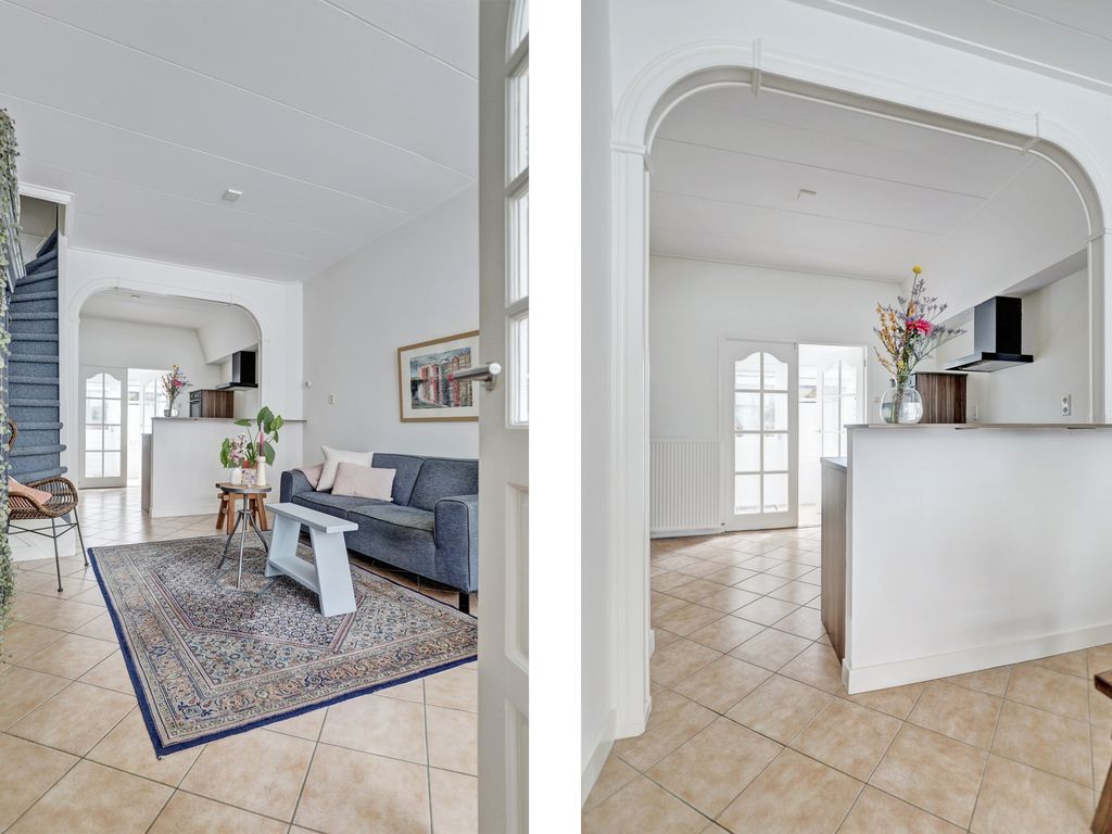 De karakteristieke boogdoorgang verbindt de woonkamer en de eethoek met de keuken en draagt bij aan de charmante sfeer van de woning.