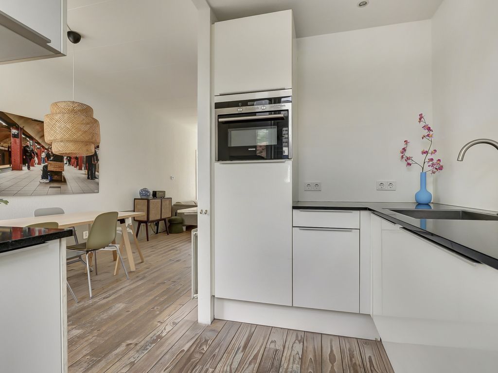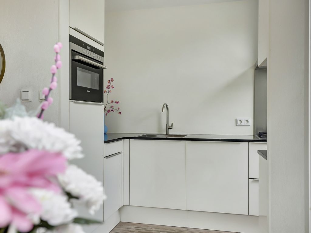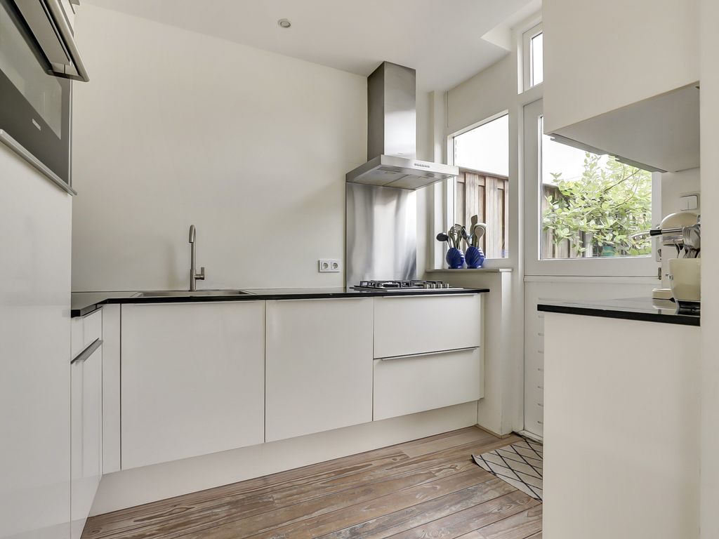 Aan de achterzijde bevindt zich de keuken (ca. 5 m²), geplaatst in een moderne hoekopstelling (2014)cen voorzien van diverse inbouwapparatuur. Ook vanuit de keuken is de zonnige, onderhoudsvriendelijke achtertuin bereikbaar.