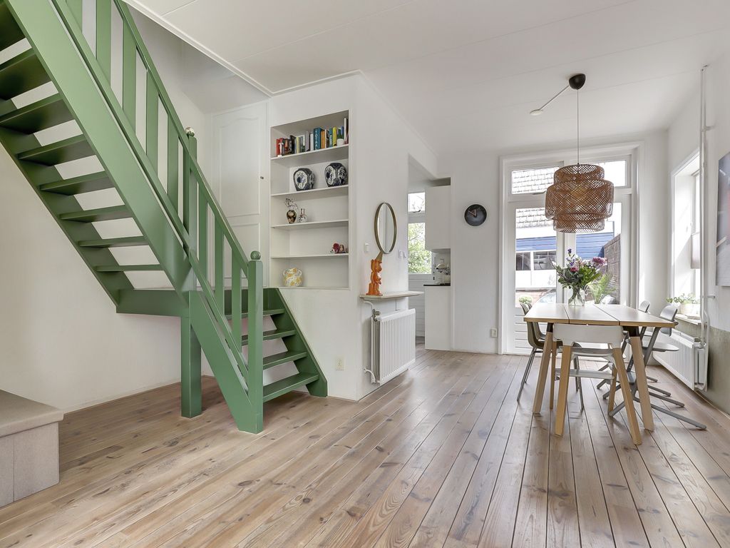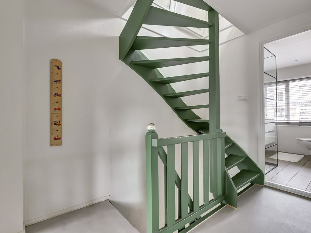 Vanuit de woonkamer heb je toegang via een open trapopgang naar de eerste verdieping.
