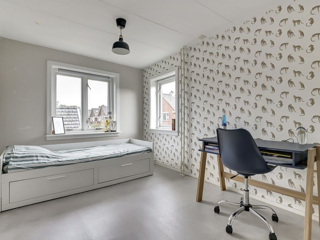 Slaapkamer 2, ca. 8 m² groot, is gelegen aan de voorzijde van de woning. Deze kamer is zeer geschikt als kinderkamer of werkkamer.