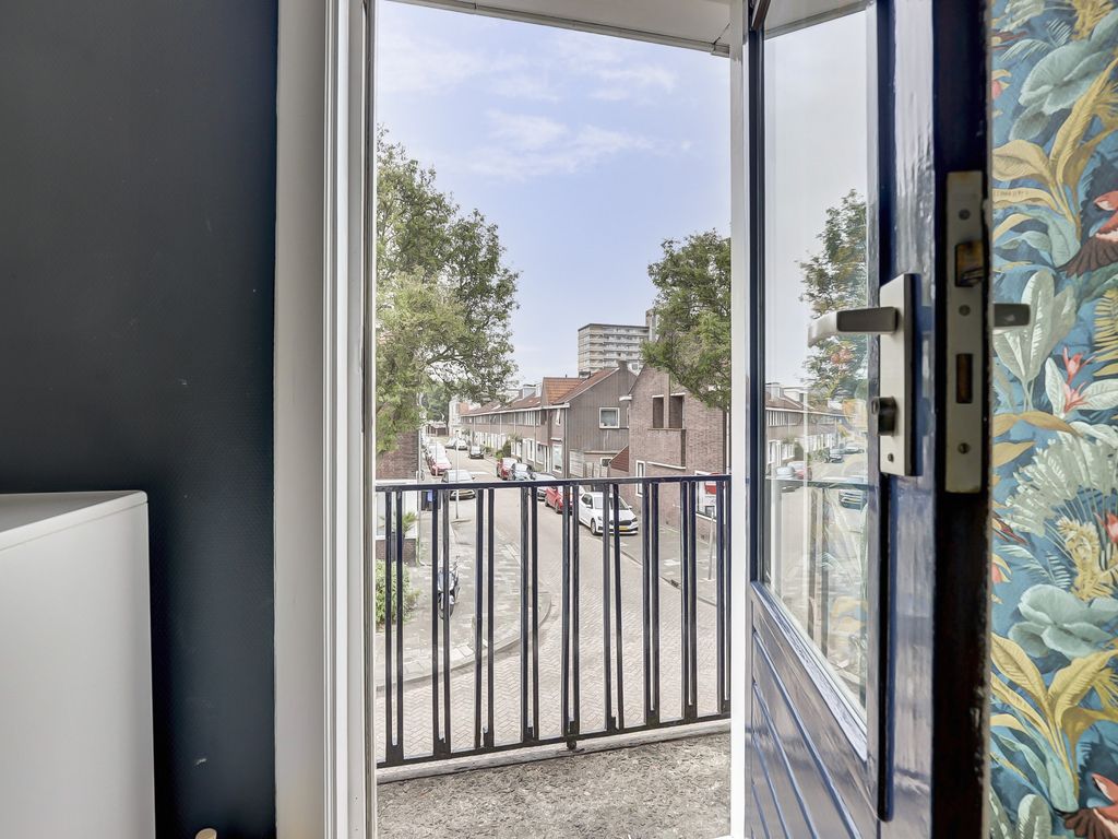 Slaapkamer 3 bevindt zich eveneens aan de voorzijde van de woning en is ca. 4 m² groot. Deze kamer biedt toegang tot een klein, gedeeld balkon — een fijne plek om even buiten te zitten.