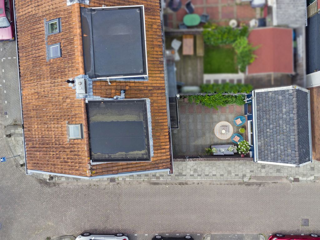 De achtertuin van ca. 53m² is gelegen op het noorden en is voorzien van een vrijstaande garage, die is voorzien van elektra. Boven de garage bevindt zich nog een extra zolderruimte (ca. 6 m² +1.50m), bereikbaar via een vlizotrap — ideaal voor seizoensopslag.