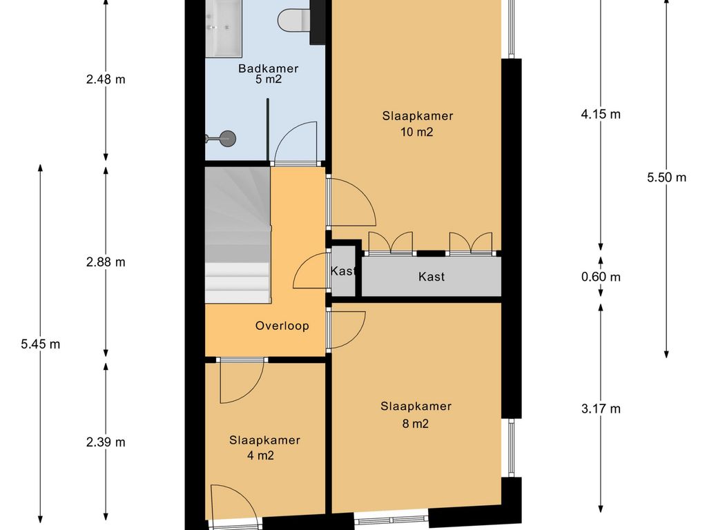 Op de overloop is een vaste kast aanwezig die zorgt voor extra opbergruimte.