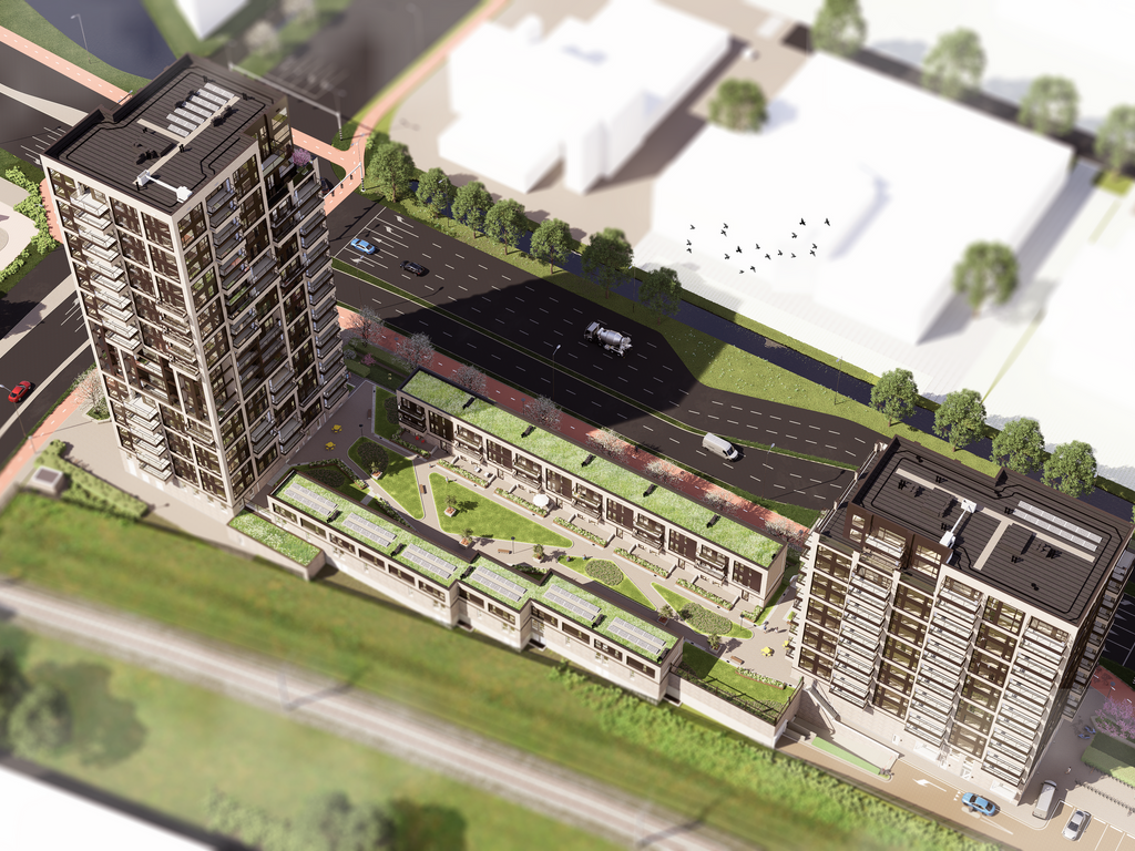 Naast een grote variëteit aan woningen krijgt het project unieke gemeenschappelijke ruimtes en voorzieningen. Denk aan een mogelijke fitnessruimte, werkruimtes, een gezamenlijke woonkamer met bar, een logeerkamer voor gasten, een bibliotheek en een gemeenschappelijke tuin. Allerlei ontmoetingsruimtes om verbindingen te leggen tussen de bewoners. Het overdekte parkeren is uitstekend geregeld in de onderbouw. Uiteraard is er ook gedacht aan deelauto’s.