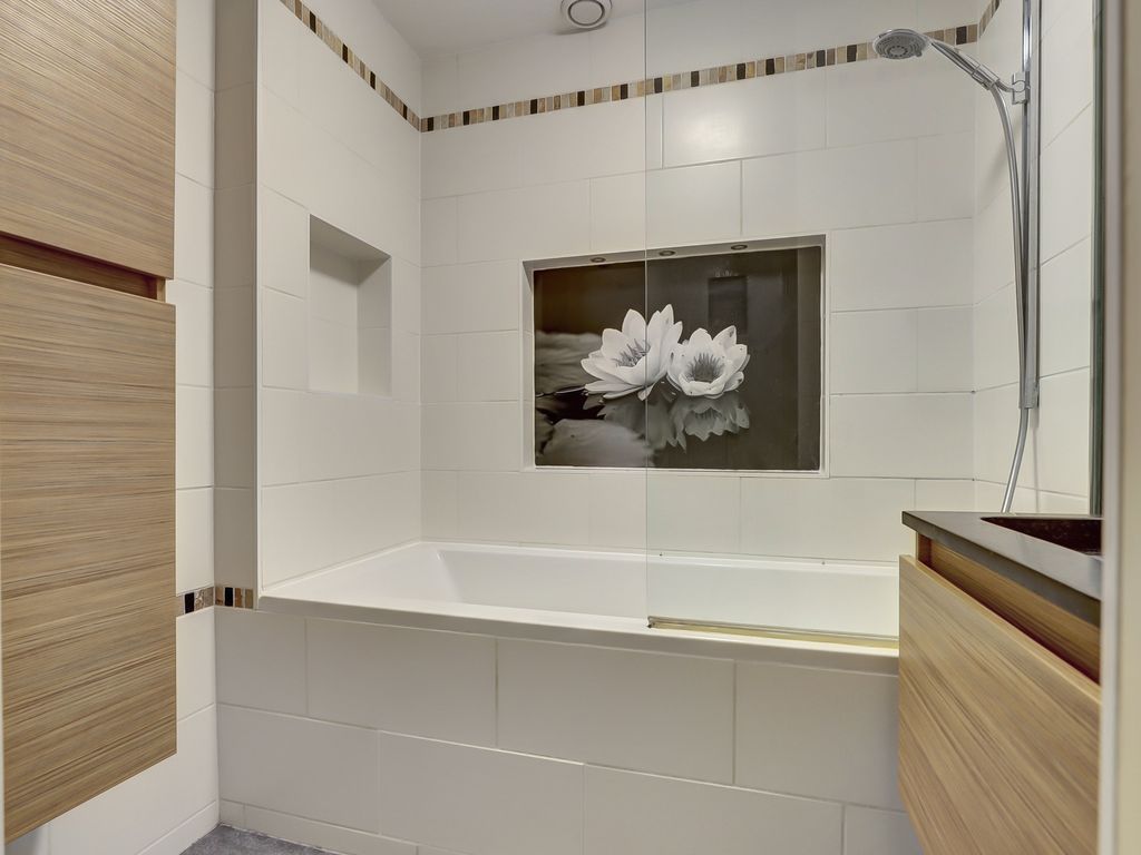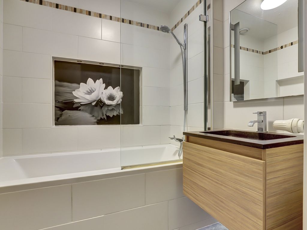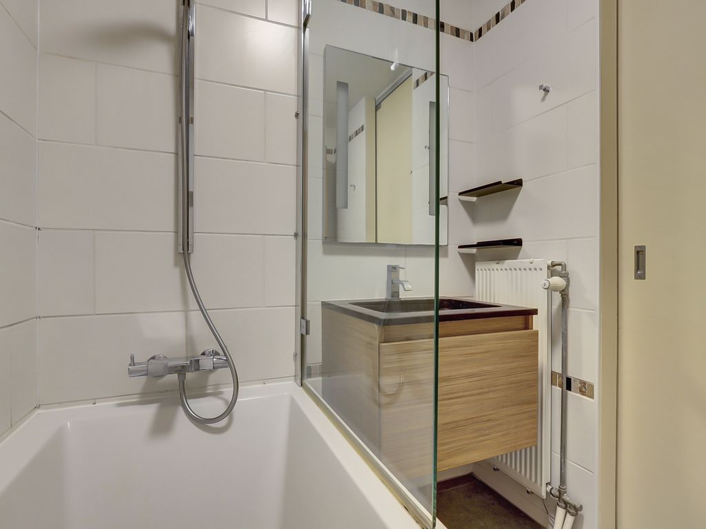 Licht betegelde toiletruimte. Naastgelegen moderne badkamer heeft een frisse, moderne uitstraling en is uitgerust met een comfortabel ligbad met douchecombinatie, een stijlvol meubel met wastafel en een spiegelkast. De ruimte is tijdloos afgewerkt en biedt alles wat je dagelijks nodig hebt. Het toilet bevindt zich separaat, wat extra praktisch is.