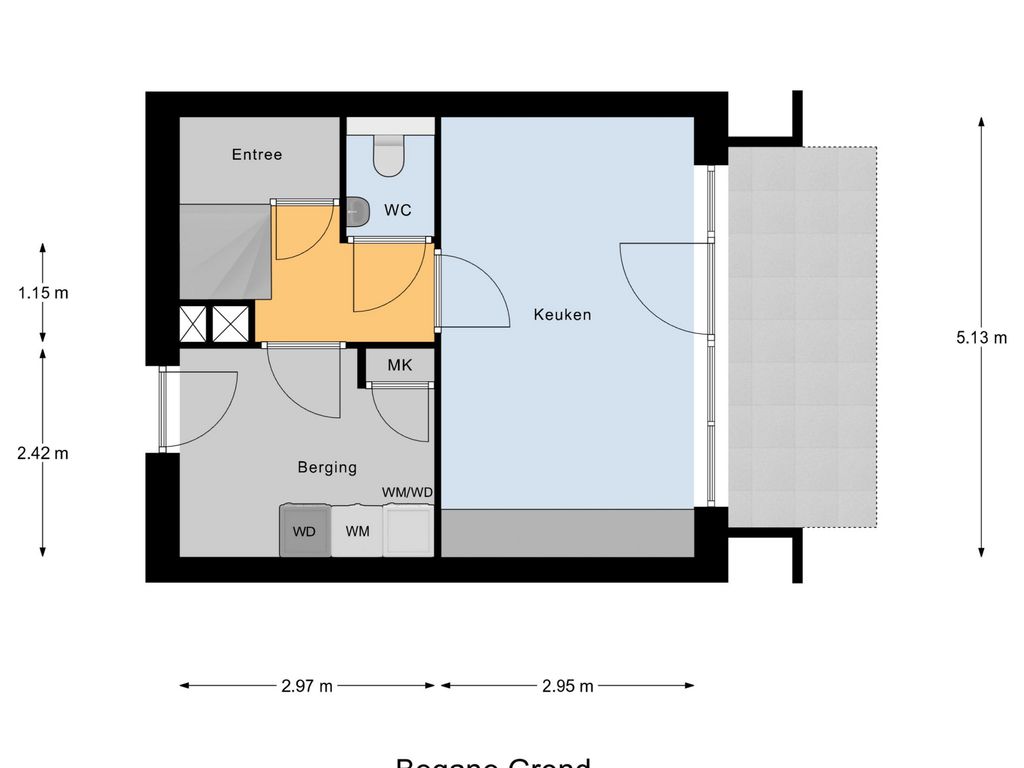Via de eigen voordeur stap je binnen in de ruime hal met toegang tot de meterkast, de toiletruimte, de trapopgang én de inpandige berging, die ook van buitenaf bereikbaar is. Ideaal voor het stallen van fietsen of het opbergen van tuinkussens en gereedschap. Aan de voorzijde van de woning bevindt zich de keukenruimte welke casco opgeleverd wordt, met vrij uitzicht op het groen voor de deur. Of je nu kiest voor een strakke moderne keuken met kookeiland of een landelijke stijl met veel kastruimte: deze ruimte vormt het kloppend hart van de woning. Direct grenzend aan de tuin kun je hier het hele jaar door genieten van het binnen- en buitenleven.