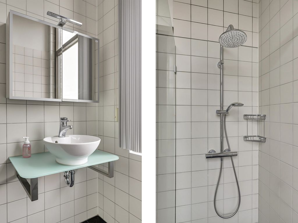 De badkamer is verzorgd en ingericht met een douche en wastafel. Daarnaast is er een separaat toilet op deze verdieping.