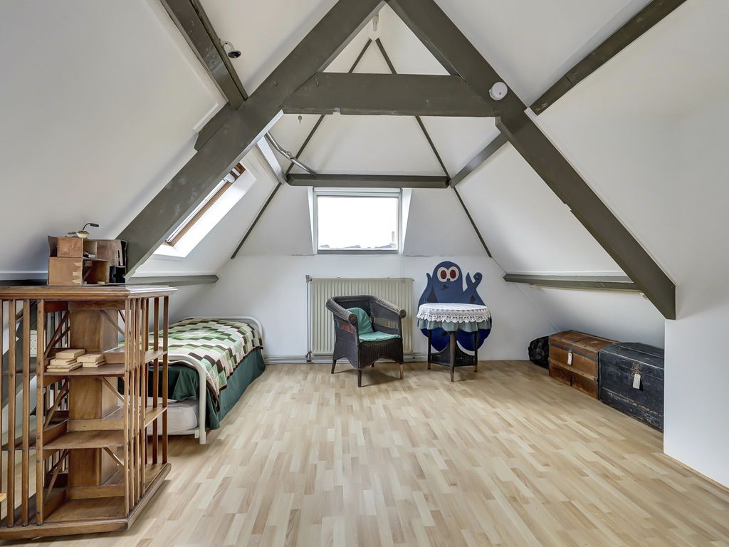 De tweede verdieping is een volwaardige woonlaag met een ruime slaapkamer en een overloop. Dankzij de dakramen en dakkapellen is ook hier sprake van veel daglicht en een aangenaam gevoel van ruimte. Deze verdieping is uitstekend geschikt als extra slaapkamer, werkruimte of hobbykamer. Tevens is er extra bergruimte aanwezig.