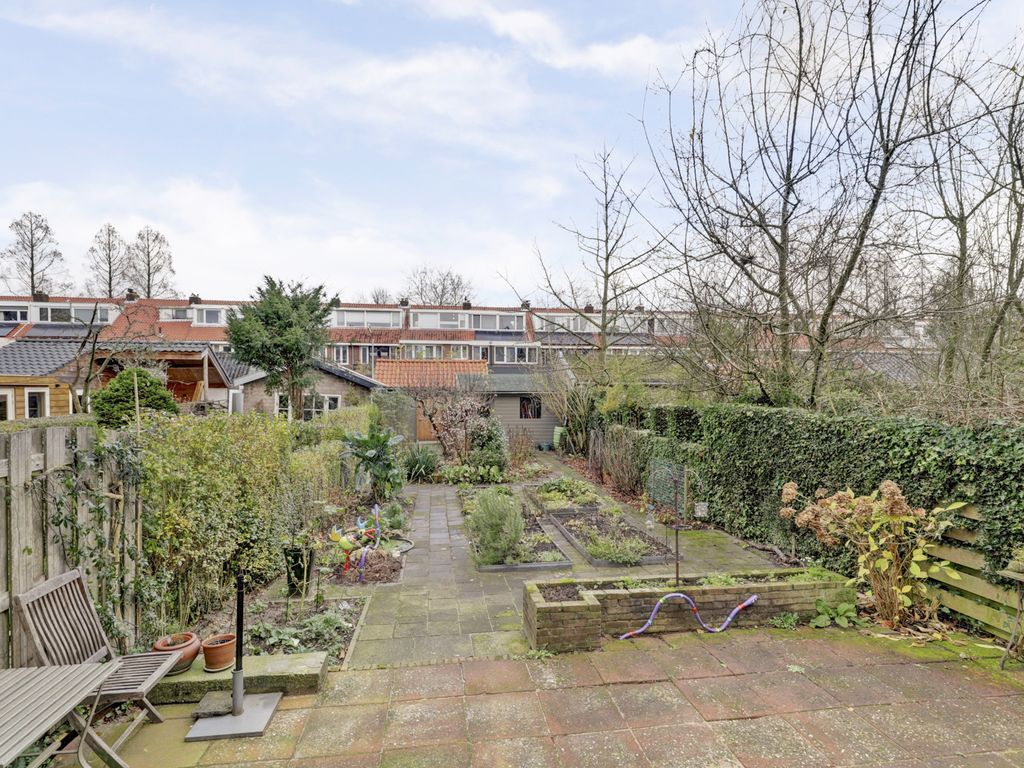De zeer ruime achtertuin van ca. 150m2 is verzorgd aangelegd en biedt een fijne combinatie van groen en bestrating. De tuin is voorzien van diverse vaste plantenbakken en biedt voldoende ruimte voor meerdere zitplekken, waardoor u hier op elk moment van de dag van de zon kunt genieten. Achter in de tuin bevindt zich een praktische berging en de tuin is bereikbaar via de achterom via de eigen zijpoort