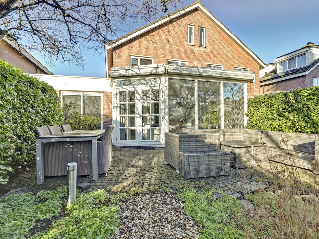 De ca. 19 meter diepe achtertuin is verzorgd aangelegd en biedt veel privacy. Er zijn meerdere zitplekken gecreëerd, waardoor u hier de hele dag kunt genieten van zon en schaduw. De tuin is bereikbaar vanuit de woonkamer en vormt een prettig verlengstuk van de leefruimte. De tuin is groen ingericht met beplanting, bomen, grind en een vijverpartij, wat zorgt voor een rustige en sfeervolle uitstraling.