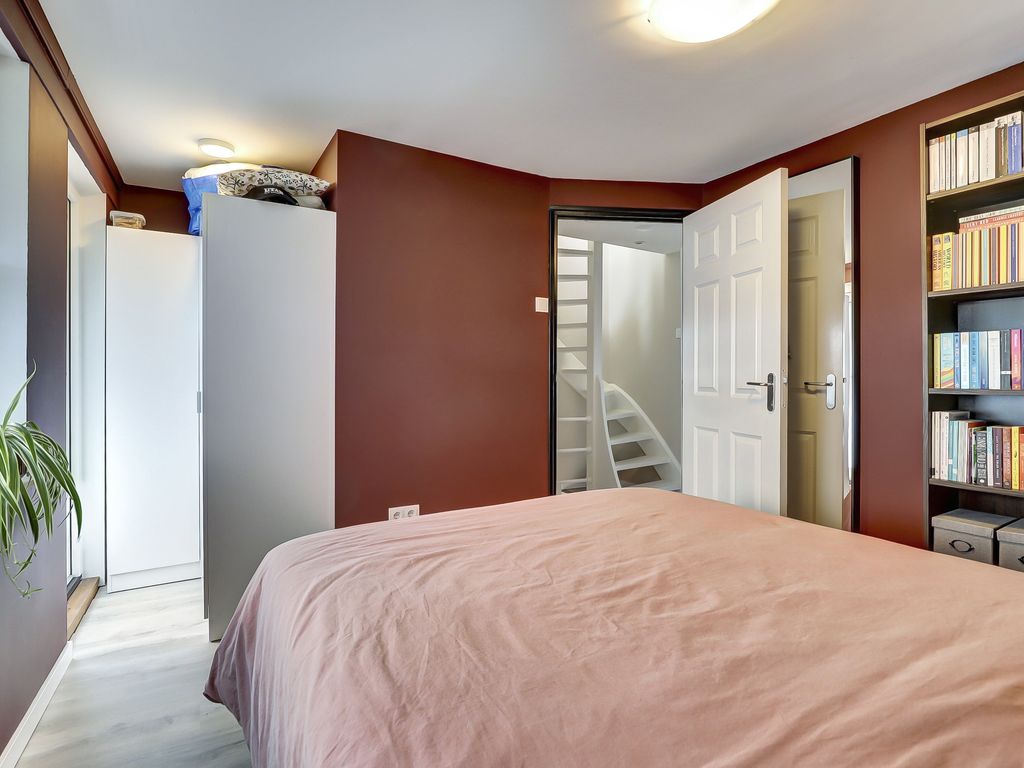 Via een vaste trap bereik je op de bovenste verdieping de derde royale slaapkamer met een dakkapel over de volle breedte waardoor er veel licht en extra ruimte is. Onder de schuine kap is extra bergruimte gecreëerd en bevindt zich hier in de vaste kastruimte de omvorm-installatie.