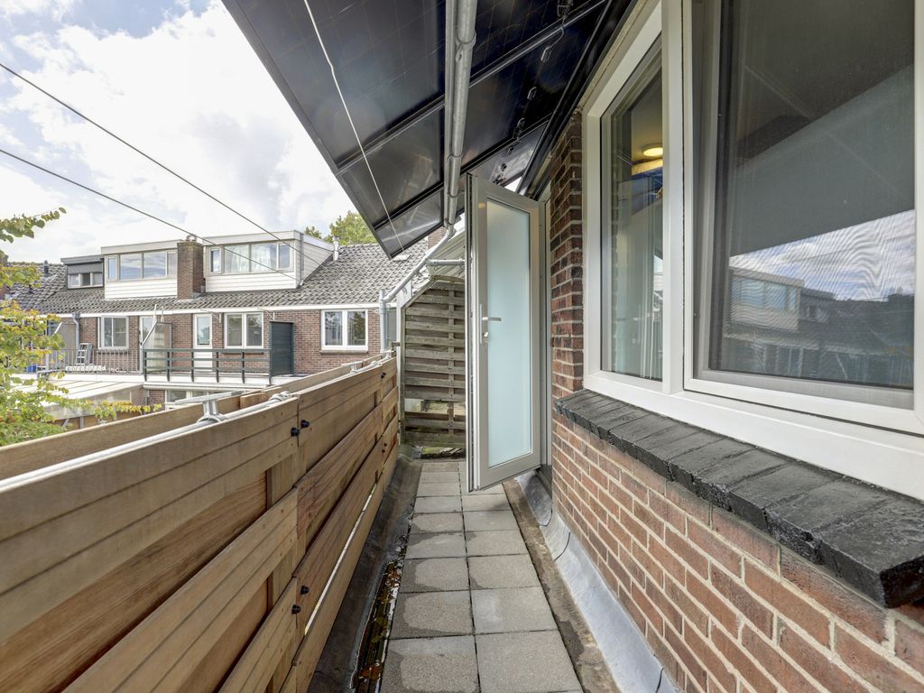 Vanuit de woonkamer stap je het dakterras op waar het heerlijk genieten is en middels een trap bereik je de diepe fraai aangelegd tuin met houten schuttingen voor optimale privacy en een ruim terras. Onder het balkon is een overdekt gedeelte gecreëerd met bergruimte: ideaal voor een gezellige zithoek of buitenkeuken.