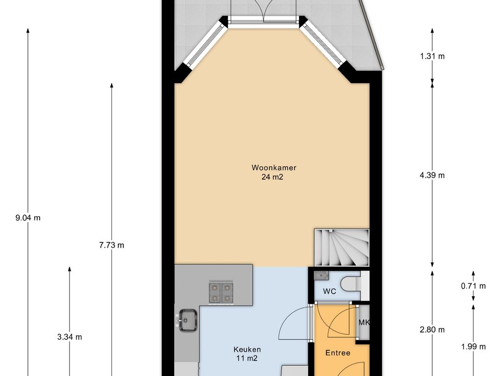 * Drie slaapkamers en een royale woonkamer met open keuken (2024);