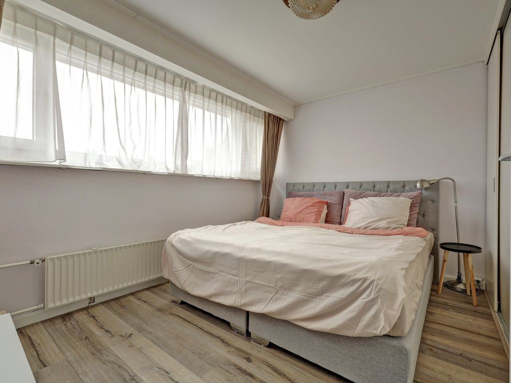 Via de overloop zijn drie slaapkamers en de badkamer bereikbaar. De aan de voorzijde gelegen slaapkamer van circa 9 m² is voorzien van een vlizotrap naar vliering. De andere slaapkamer aan de voorzijde van de woning is circa 7 m² groot en de derde, aan de achterzijde gelegen slaapkamer is voorzien van een vaste kastenwand en heeft een mooi formaat met circa 10 m².